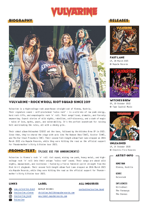 You would like to interview Vulvarine or need audio files for a review? Please contact the Napalm Records Press Department:
